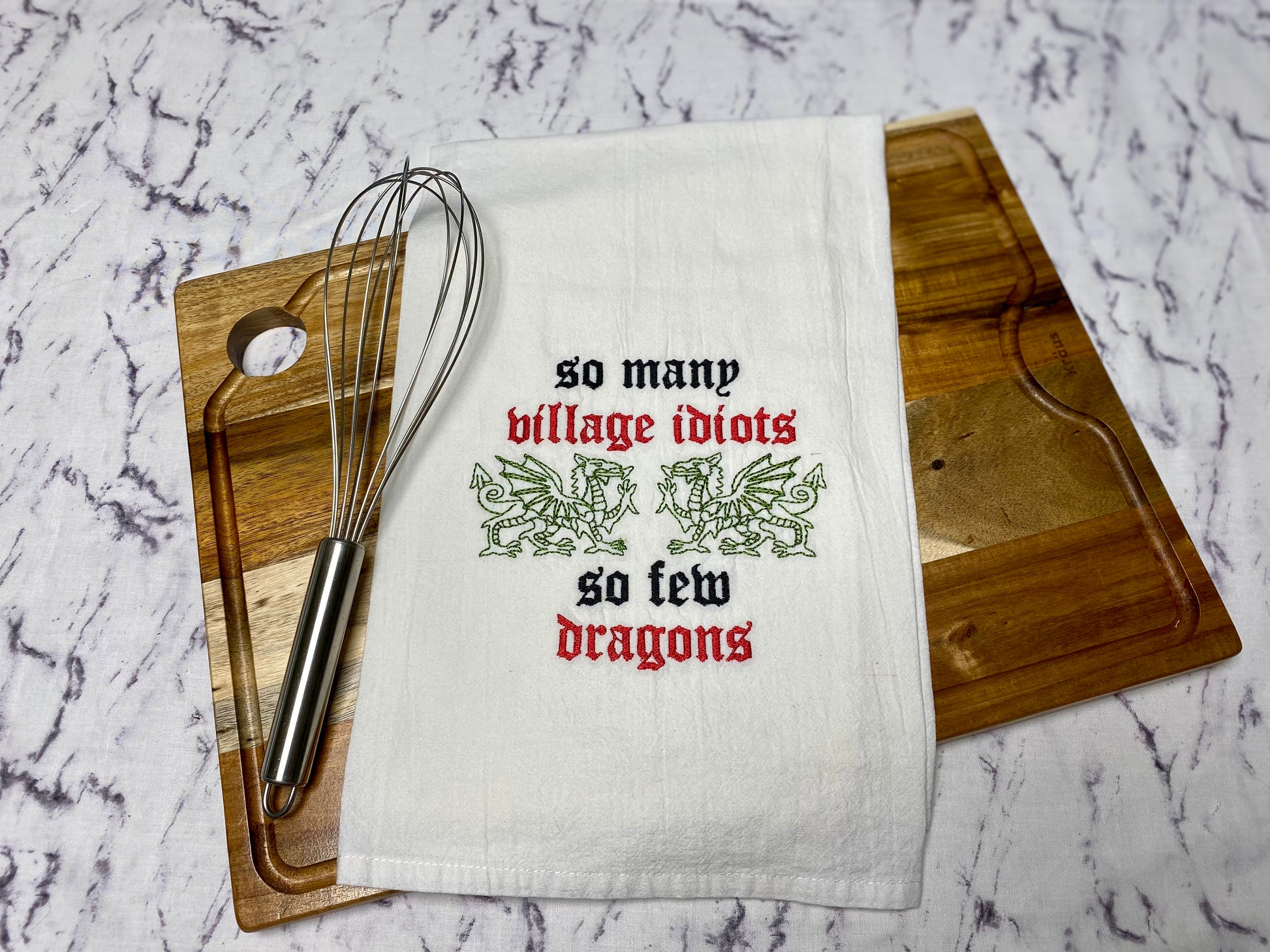So Many Village Idiots, So Few Dragons Embroidered Cotton Dish Towel - 28 X 28